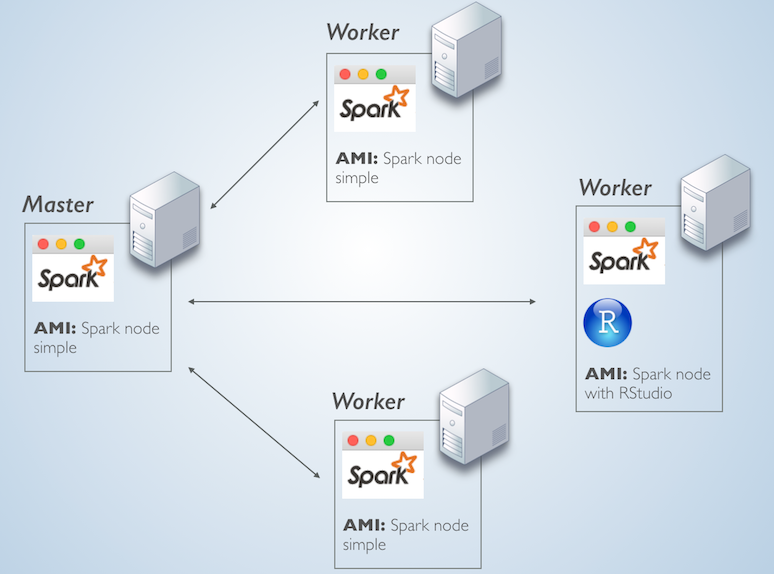 The plan is to launch 4 identical EC2 server instances. One server will be the Master node and the other 3 the worker nodes. In one of the worker nodes, we will install RStudio server.